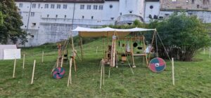 Man sitzt beisammen, wärmt sich am Feuer, hört das Knistern der Flammen und das Klappern von Werkzeugen. Geschichten von fernen Reisen, mutigen Kriegern und alltäglichen Herausforderungen werden erzählt, während die Sonne hinter den Zeltplanen verschwindet. Handwerk, Kochen, Gemeinschaft – alles wird lebendig, wie es vor über tausend Jahren üblich war.