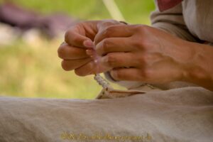 Auch textile Alltagsgegenstände wie Taschen, Beutel oder praktische Ausstattungsstücke fertigen unsere Mitglieder aus Naturmaterialien selbst an. Im Bereich Eisen konzentrieren wir uns auf funktionale Gebrauchsgegenstände, stets mit Blick auf historische Vorbilder.