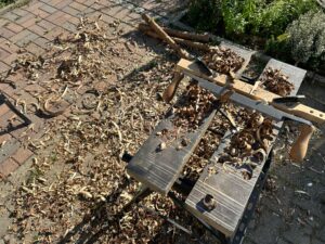 Ein besonderer Schwerpunkt unserer Arbeit liegt auf der Holzbearbeitung. Unter den Händen unserer Handwerker entstehen Bänke, Tische, Truhen oder Lagerkonstruktionen, alles orientiert an archäologischen Funden und überlieferten Techniken.